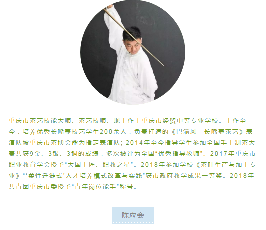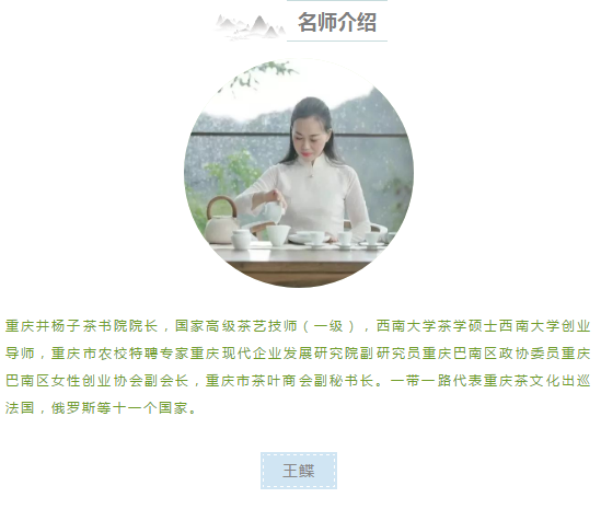学习时长:报考二级茶艺技师,须参加前四天的课程,报考高等级茶艺技师,须完成所有课程